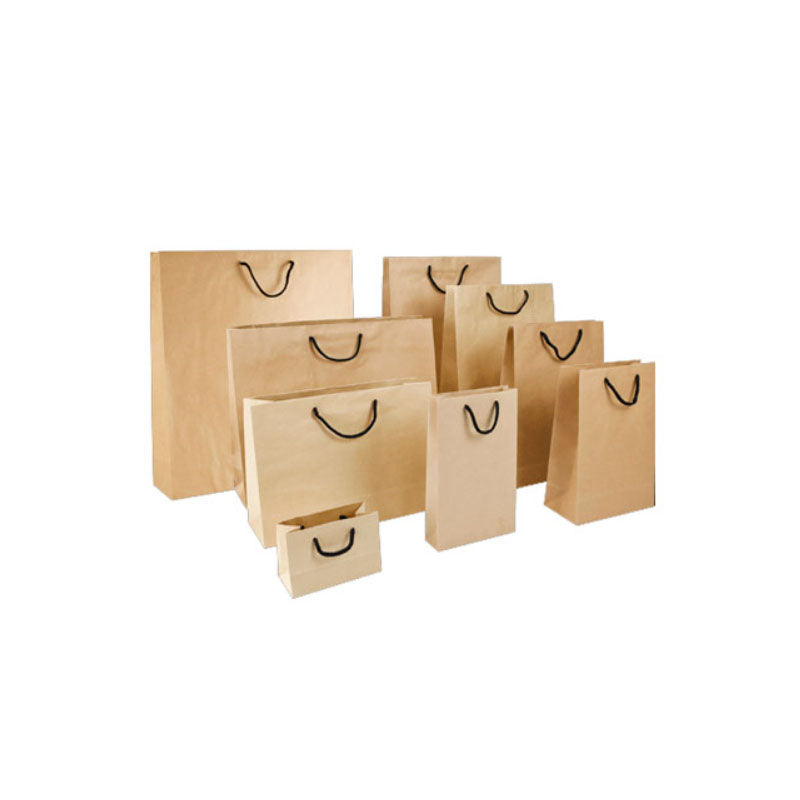 Eco-friendly kraft paper bag with flat handles, ideal for takeaways, apparel packaging, or retail use. Simple, strong, and sustainable.