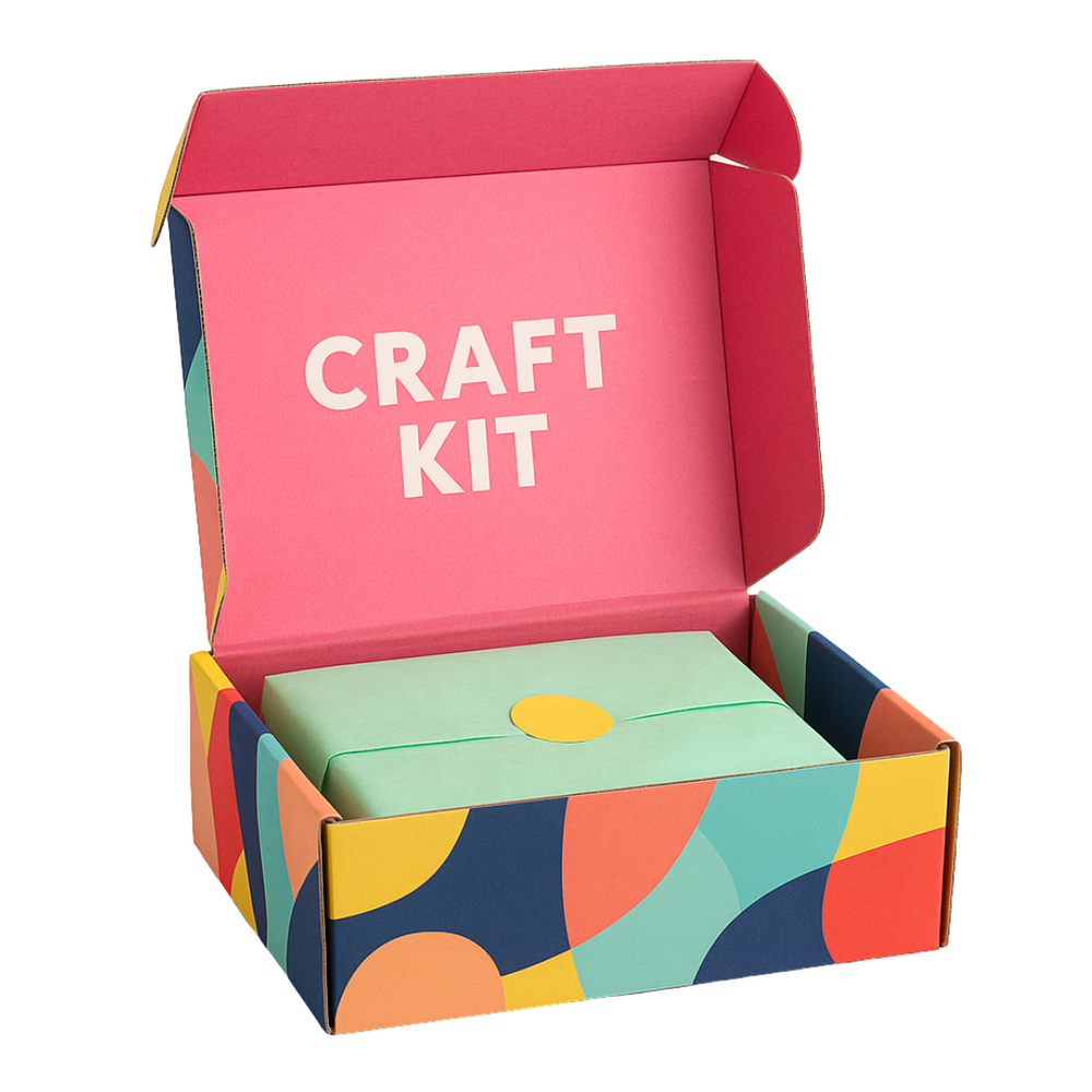 Attractive mailer box for monthly or one-time craft kit deliveries