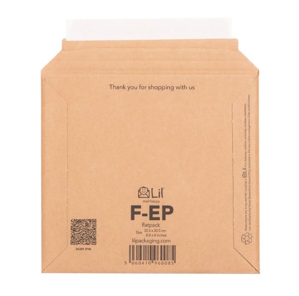 Our square envelopes were designed to be able to send up to three 7" Vinyl EPs through the mail securely and safely without any extra packaging needs. Much stronger than other lesser vinyl mailers, the F-EP is made from 150 gsm 'Kraft' e-flute corrugated cardboard. See more of our 7" EP Vinyl Packaging.