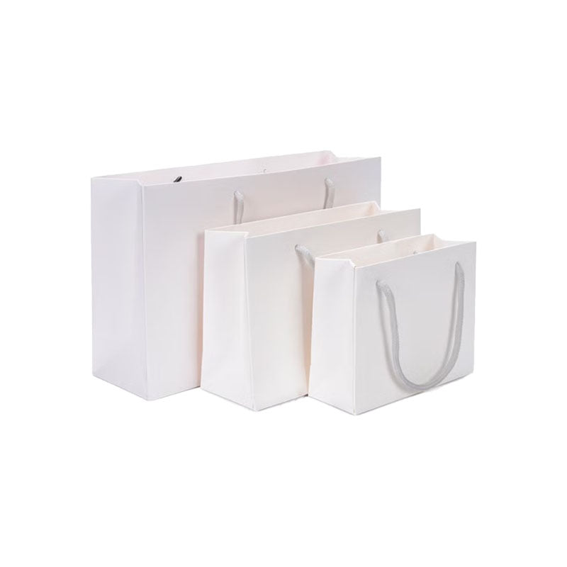 Add a premium feel to your product with this glossy white paper bag. Best suited for luxury retail, boutiques, and gifting.